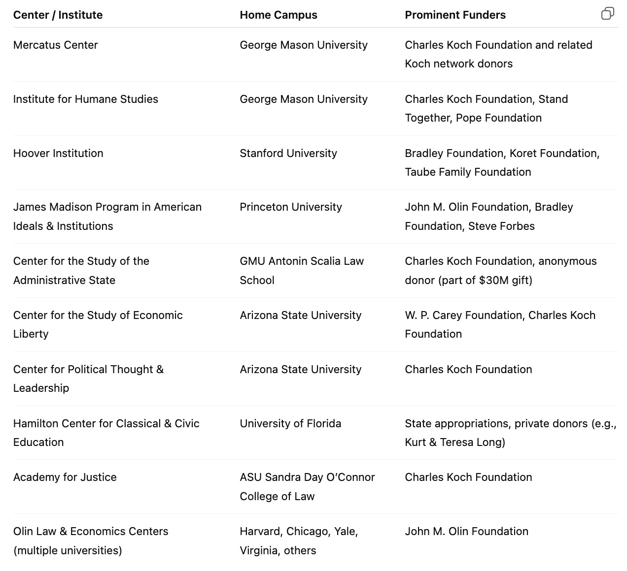 Ironically, an unspoken secret in academia is that the quickest route to fame and fortune is to swing to the right. Much to my disappointment, there are vanishingly few billionaires looking to fund the axe-grinding personal projects of left-leaning academics, but plenty of richly endowed institutes for conservative-think. Here are a few of the most prominent, but there are plenty of others.